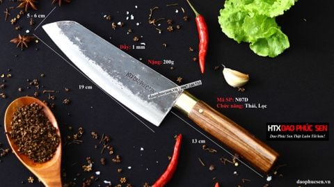 Dao thái kiểu 01 khâu đồng là một sản phẩm của thương hiệu rèn dao thủ công nổi tiếng HTX DAO PHÚC SEN. với chiều dài tổng thể của dao là 32 cm, bề rộng 5 cm, độ dầy khoảng 1 mm, cùng với cân nặng 180g, với trọng lượng nhẹ, thiết kế gọn gàng và thuôn dài. Dao thái kiểu 01 khâu khâu đồng rất thích hợp và được sử dụng để thái rau, thịt, lọc....cho vết cắt đẹp, ngọt, mượt mà và vuông vắn, đạt thẩm mỹ cao.