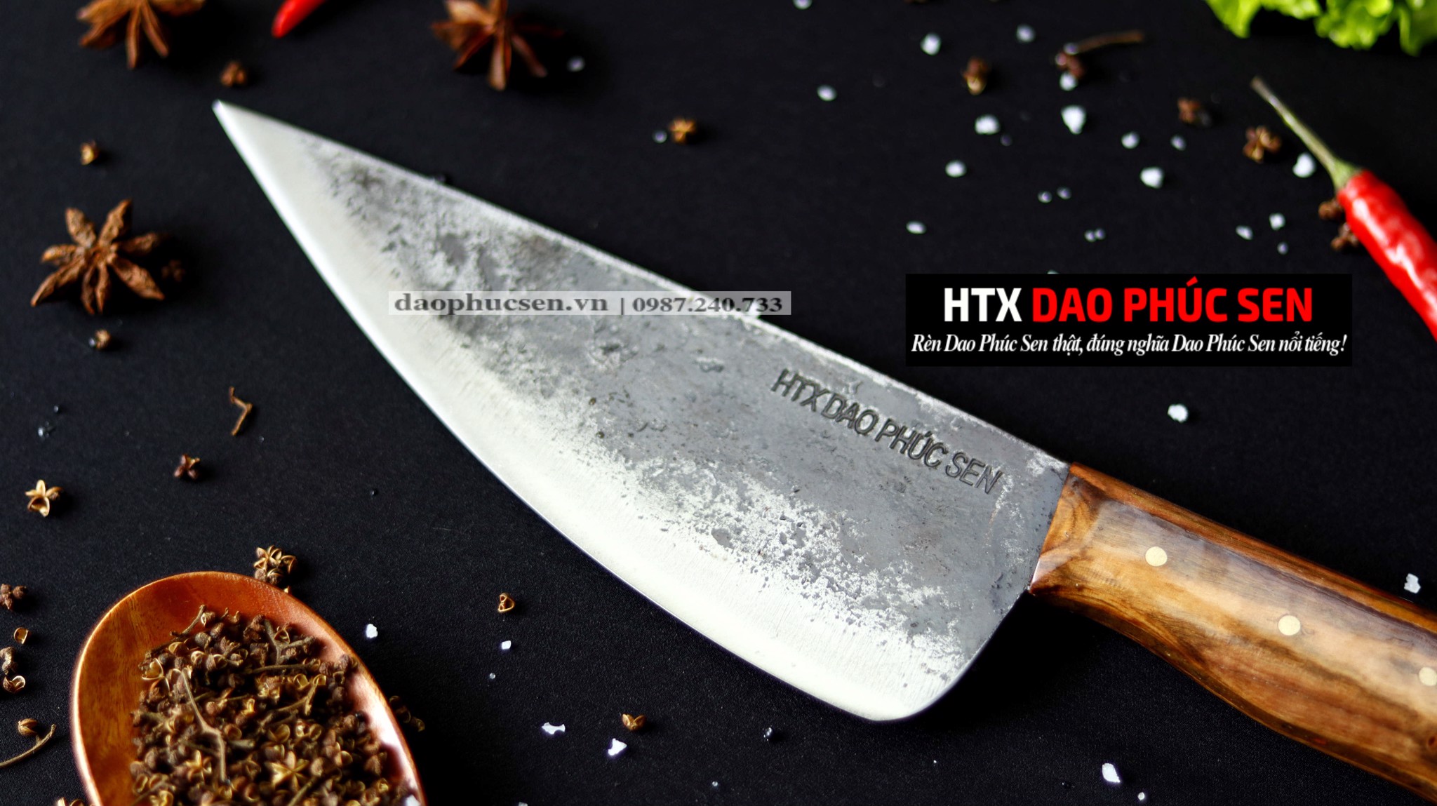 Sản phẩm sản xuất tại DAO VIP - HTX DAO PHÚC SEN đơn vị chuyên sản xuất dao bếp, dao đi rừng, nông cụ.