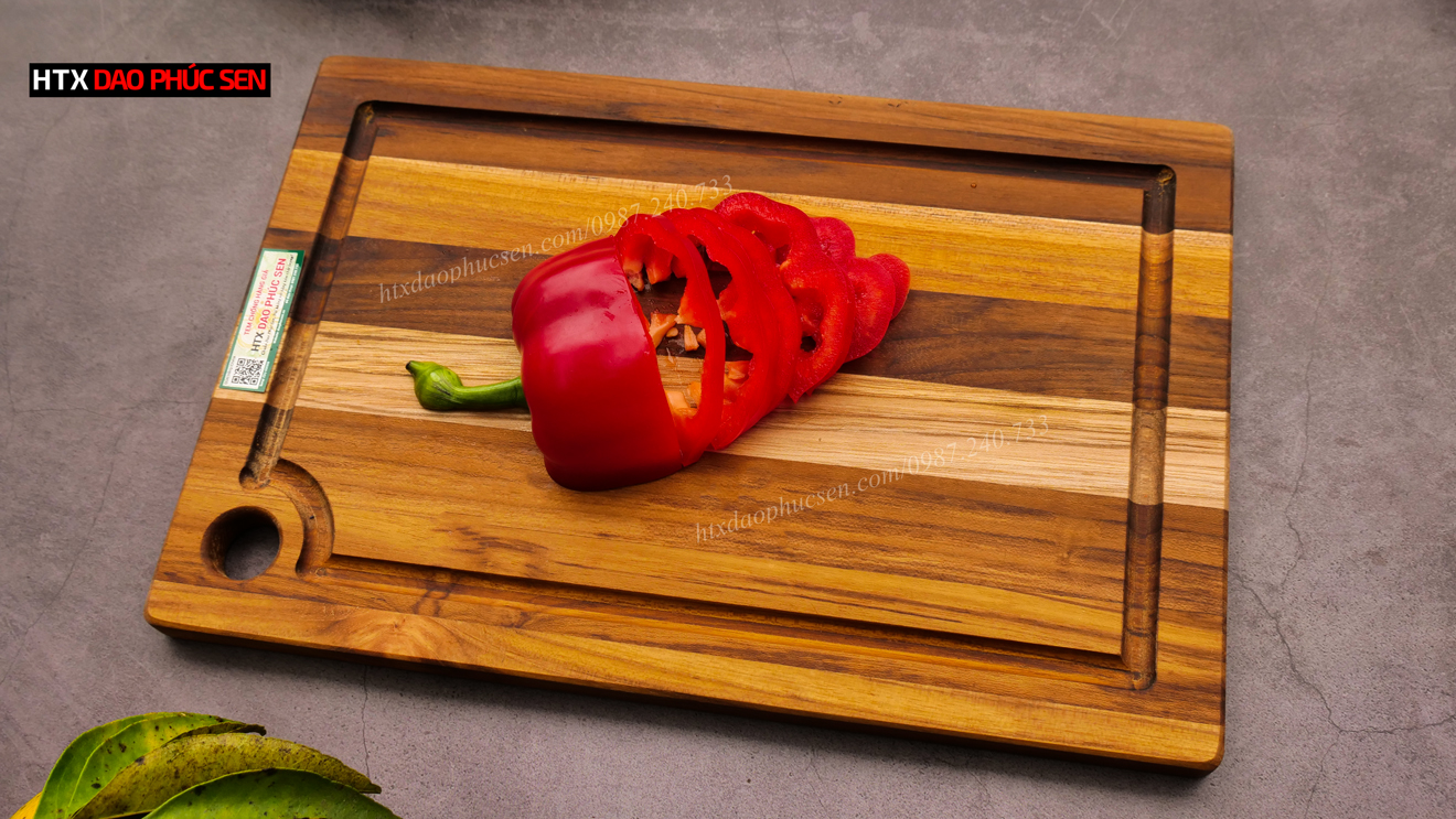 Thớt Gỗ Tếch Cao Cấp - Cắt Thái, Trang Trí - 30,5x20,5x1,4cm - CNRL01 HÀNG CHUẨN DAO VIP CAO BẰNG