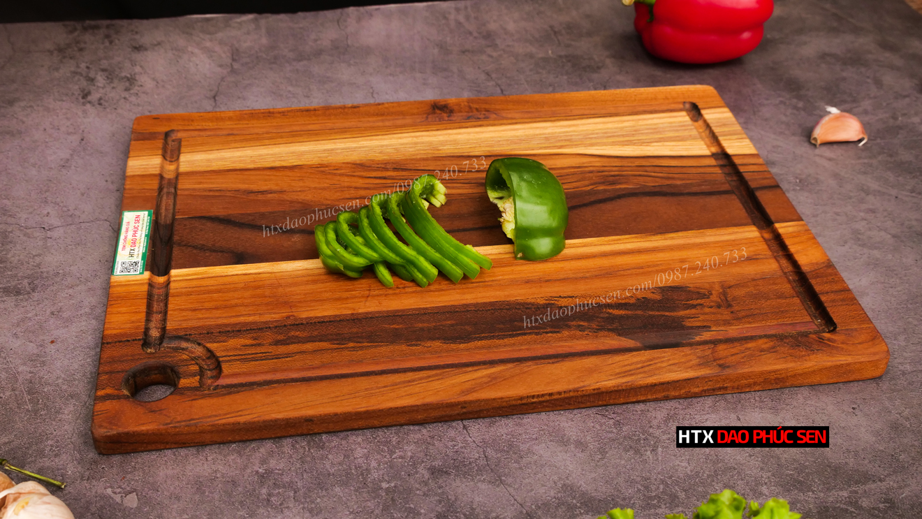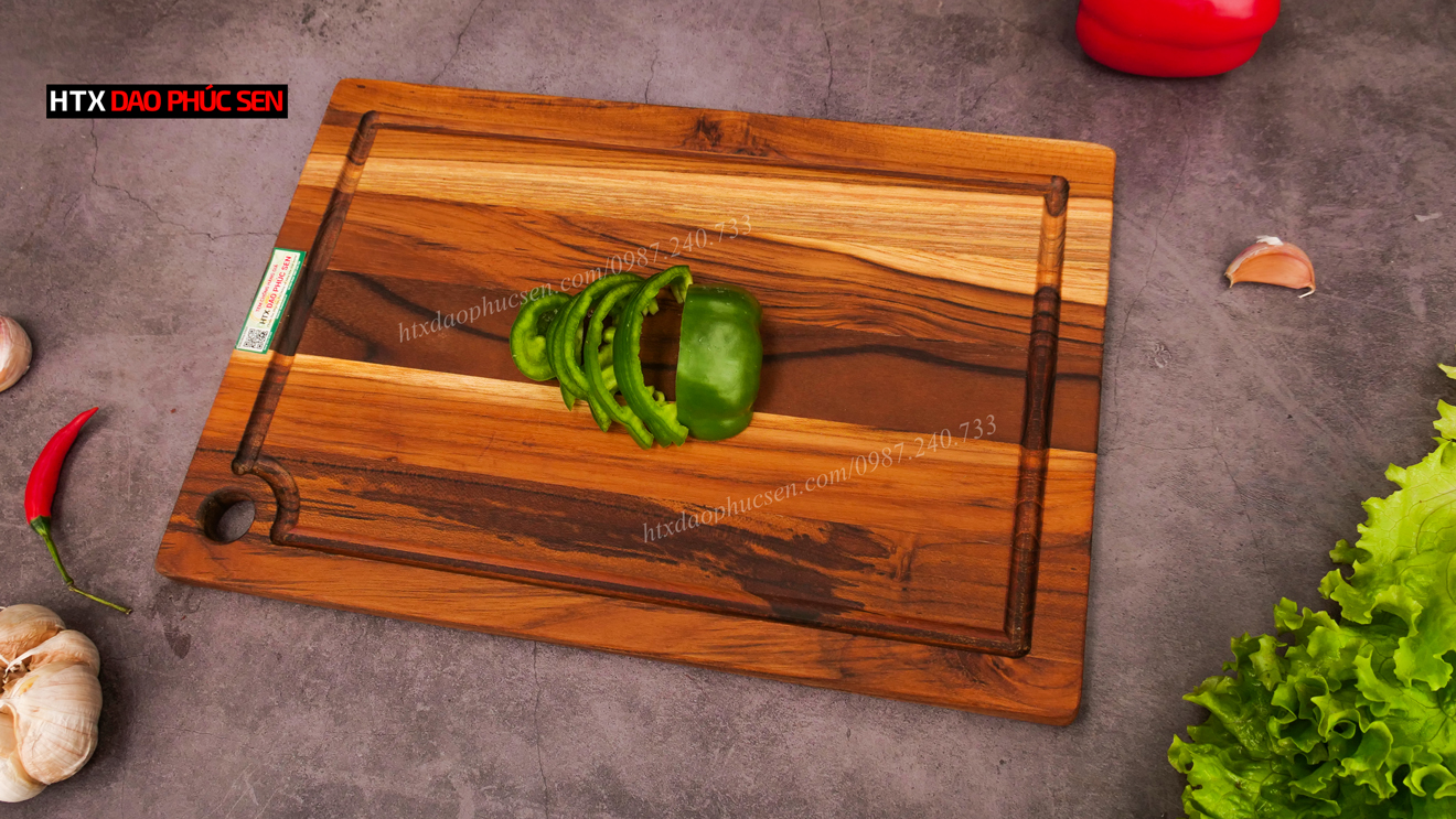 Thớt gỗ Tếch cao cấp - cắt thái, trang trí - 35x24x1,4cm - CNRL02 của DAO VIP CAO BẰNG an toàn sức khỏe người dùng