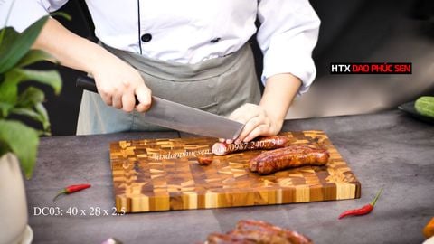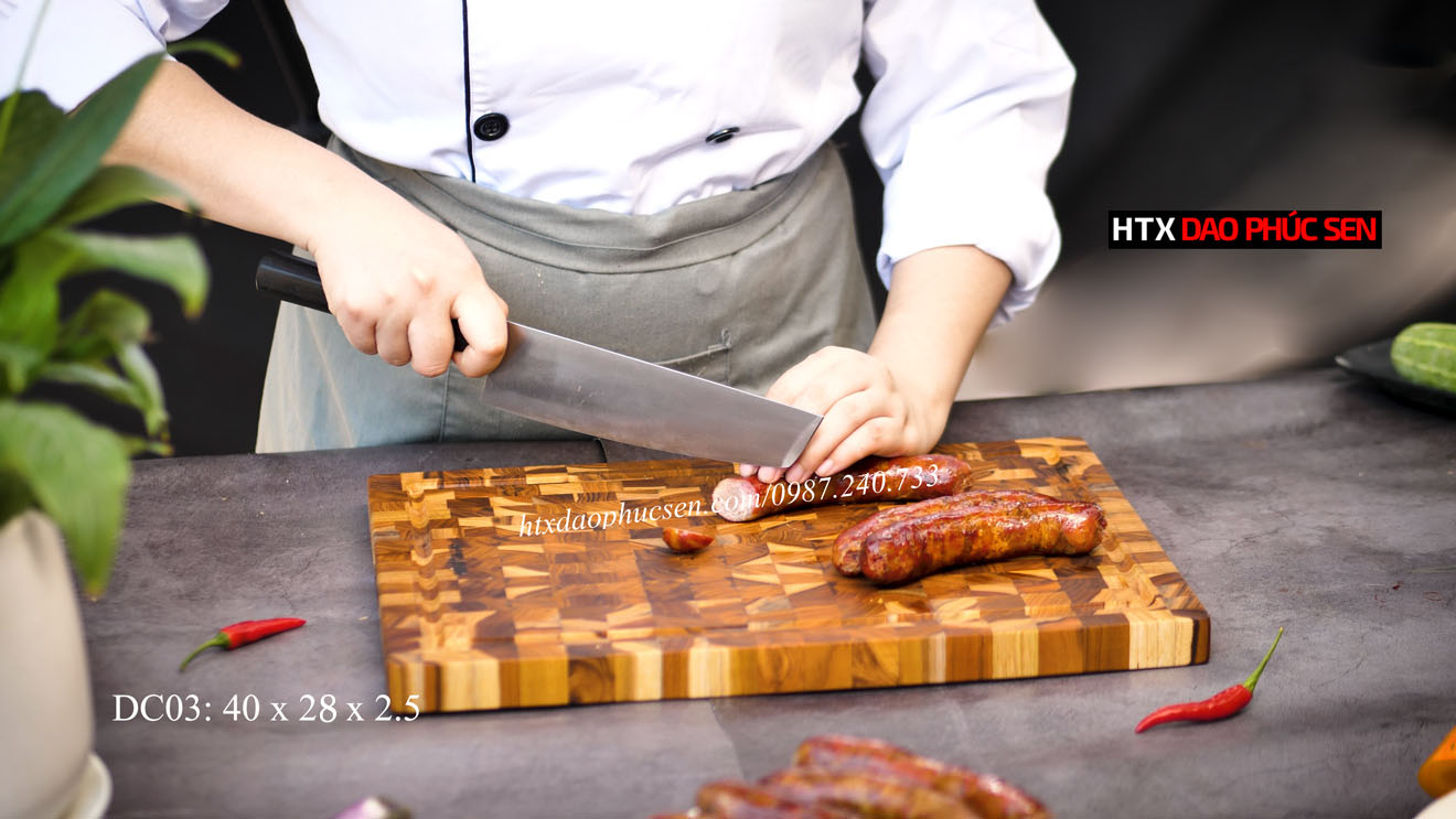 Thớt Gỗ Tếch Cao Cấp - Chặt Thái, Trang Trí - 40x28x2,5cm - DC03 của DAO VIP CAO BẰNG là một trong những dòng thớt rất được ưa chuộng tại thị trường Việt Nam hiện nay, được làm từ gỗ Tếch ( Gỗ Tếch, Giá Trị ) có độ bền cao, khả năng chống sốc và cong vênh, mối đe dọa. Bên cạnh chất lượng cao thì kiểu dáng thớt cũng rất độc và sang trọng.